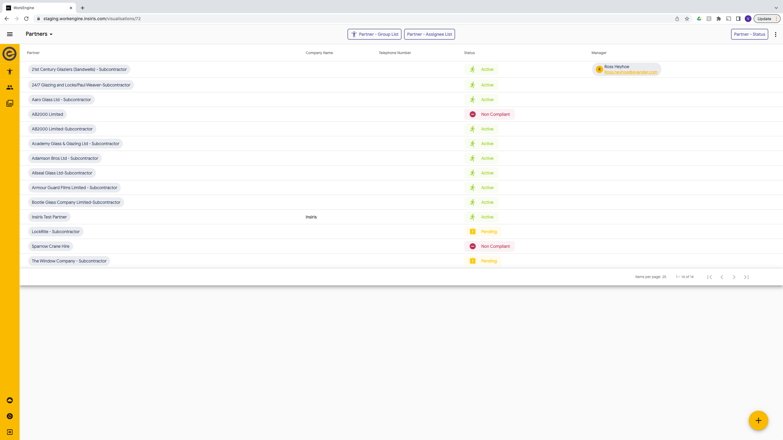 Partners will be shown in 1 of 3 different statuses, Pending, Active or Non Compliant.