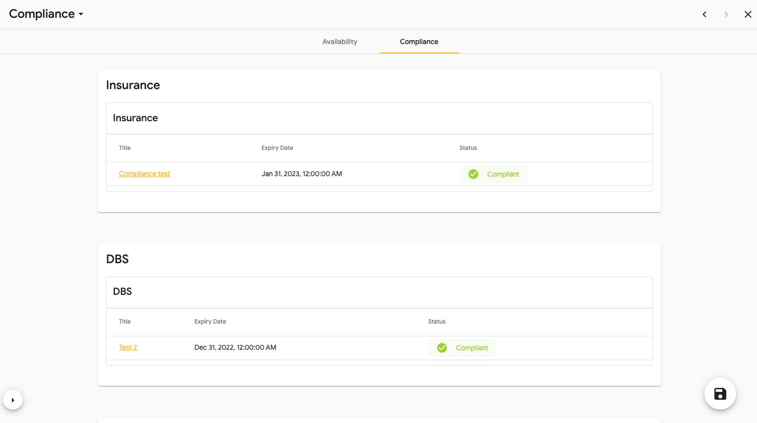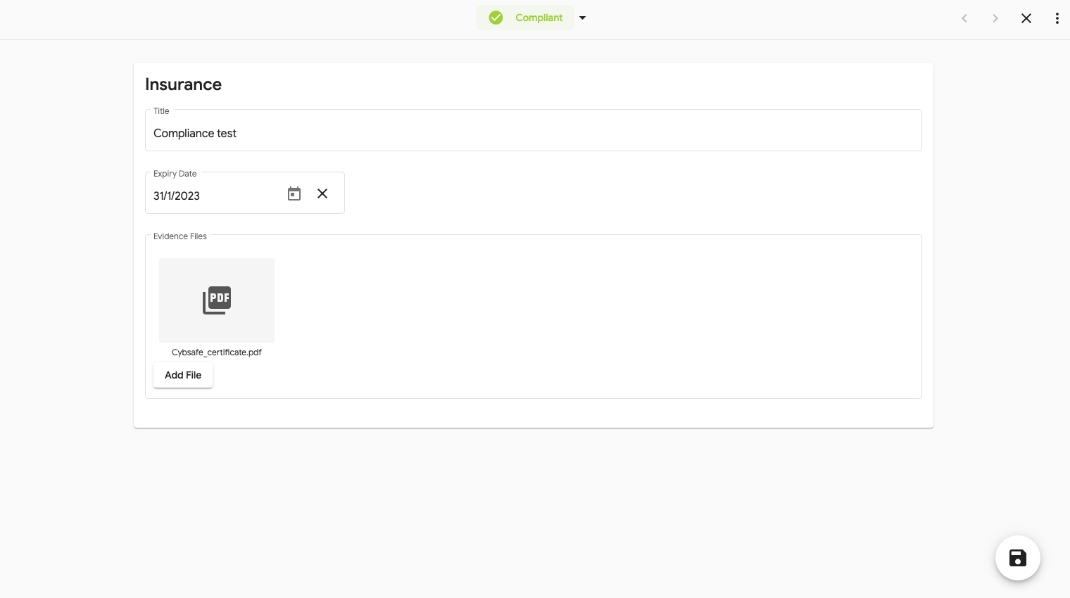 This area is where you can add and manage your compliances that Evander requires.